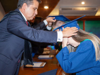 Antes de finalizar la ceremonia, se escuchó el discurso del Director de Posgrados: “La invitación a ser recíprocos con su trama relacional, con su familia, con su barrio, con sus maestros, con sus pacientes, con su país, así lo plantea el himno de nuestra Universidad, fundada hace 52 años, que pertinentemente decía a ese contexto fundacional: Eduquemos, pues nos educaron”.