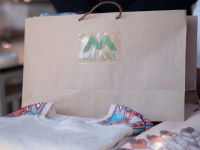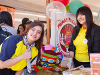 Mientras se desarrollaban las charlas, en los stands se ofrecían los productos desde prendas de vestir hasta comida. Los estudiantes Kevin Perugachi, de Administración de Empresas; y Melany Arrayán, de Negocios Internacionales, mostraron las bondades de su emprendimiento de ponchos de tela, llamado Mudana (vestimenta en quichua).