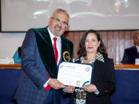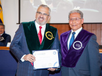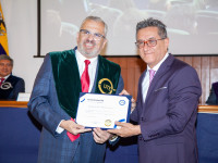 Nuestro rector también fue homenajeado por sus más de 20 años de labor y entrega. Al recibir el diploma, se hizo hincapié a su liderazgo visionario y pasión por la excelencia.