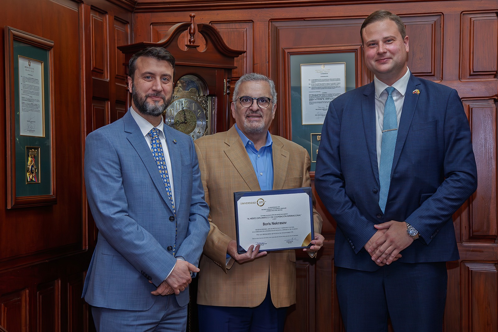 UTE RECONOCE AL DIPLOMÁTICO RUSO BORIS NEKRASOV POR SU APORTE A LA COOPERACIÓN CULTURAL Y ACADÉMICA