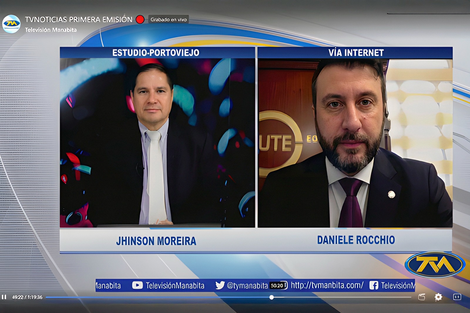 El Rector de la Universidad UTE, Daniele Rocchio, participó como invitado en el programa de entrevistas del noticiero de Televisión Manabita, Canal 30, medio de amplia cobertura en la provincia de Manabí. El espacio, conducido por el periodista Jhinson Moreira, generó un diálogo abierto sobre los principales retos y oportunidades de la educación superior en el Ecuador.