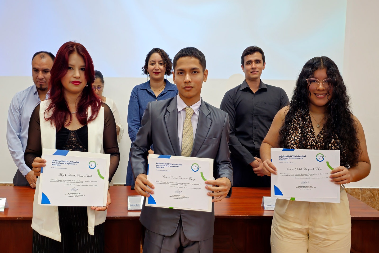 El 13 de noviembre de 2025, la Universidad UTE, a través de la Facultad de Ciencias de la Ingeniería e Industrias (FCII) de la Sede Santo Domingo, realizó el Reconocimiento a los Mejores Proyectos de Evaluación Formativa de Mitad de Carrera. Este espacio solemne, desarrollado en el Aula Magna de la Sede, reunió a autoridades académicas, docentes, estudiantes y familiares para destacar la excelencia, innovación y compromiso de los estudiantes en el desarrollo de propuestas técnicas y científicas.